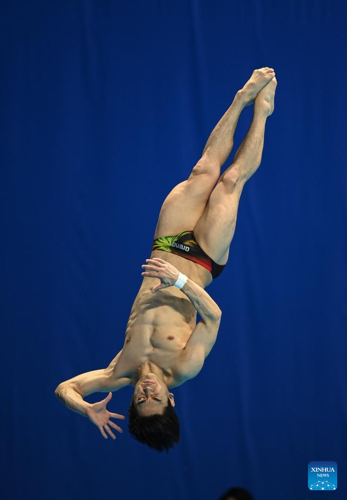 Shi Zhenyu of China competes during the men's 1m springboard final of diving at the 31st FISU Summer World University Games in Chengdu, southwest China's Sichuan Province, Aug. 5, 2023. (Xinhua/Liu Kun)