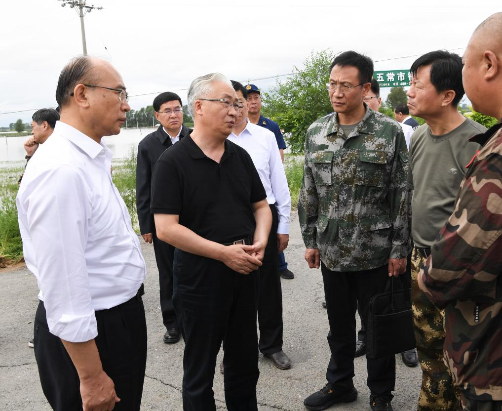 Zhang, also a member of the Political Bureau of the Communist Party of China Central Committee, directed flood control work on front lines on Saturday and Sunday, checking on the relocation of local residents and inspecting water levels.