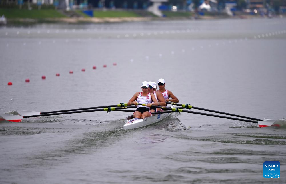 Team Poland compete during the rowing women's four final A at the 31st FISU Summer World University Games in Chengdu, southwest China's Sichuan Province, Aug. 6, 2023. (Xinhua/Zhao Zishuo)