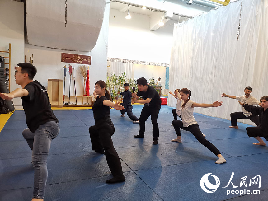 People's Daily Online journalists visit a martial arts school in Moscow, Russia. (People's Daily Online/Yang Qian)
