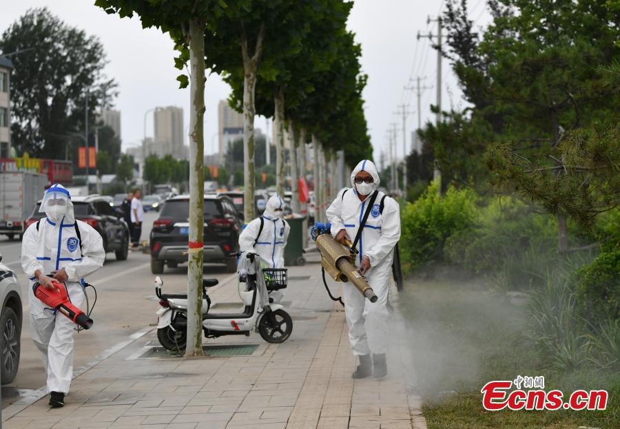 A staff member conducts outdoor disinfection in Zhuozhou, north China's Hebei Province, Aug. 6, 2023. (Photo: China News Service/Han Bing)