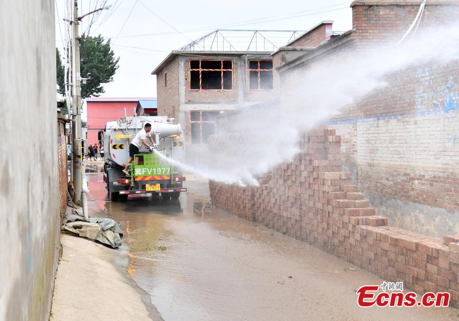 Locals in flood-hit Zhuozhou carried out cleaning-up and disinfection as the floodwaters gradually receded in various parts of the city.