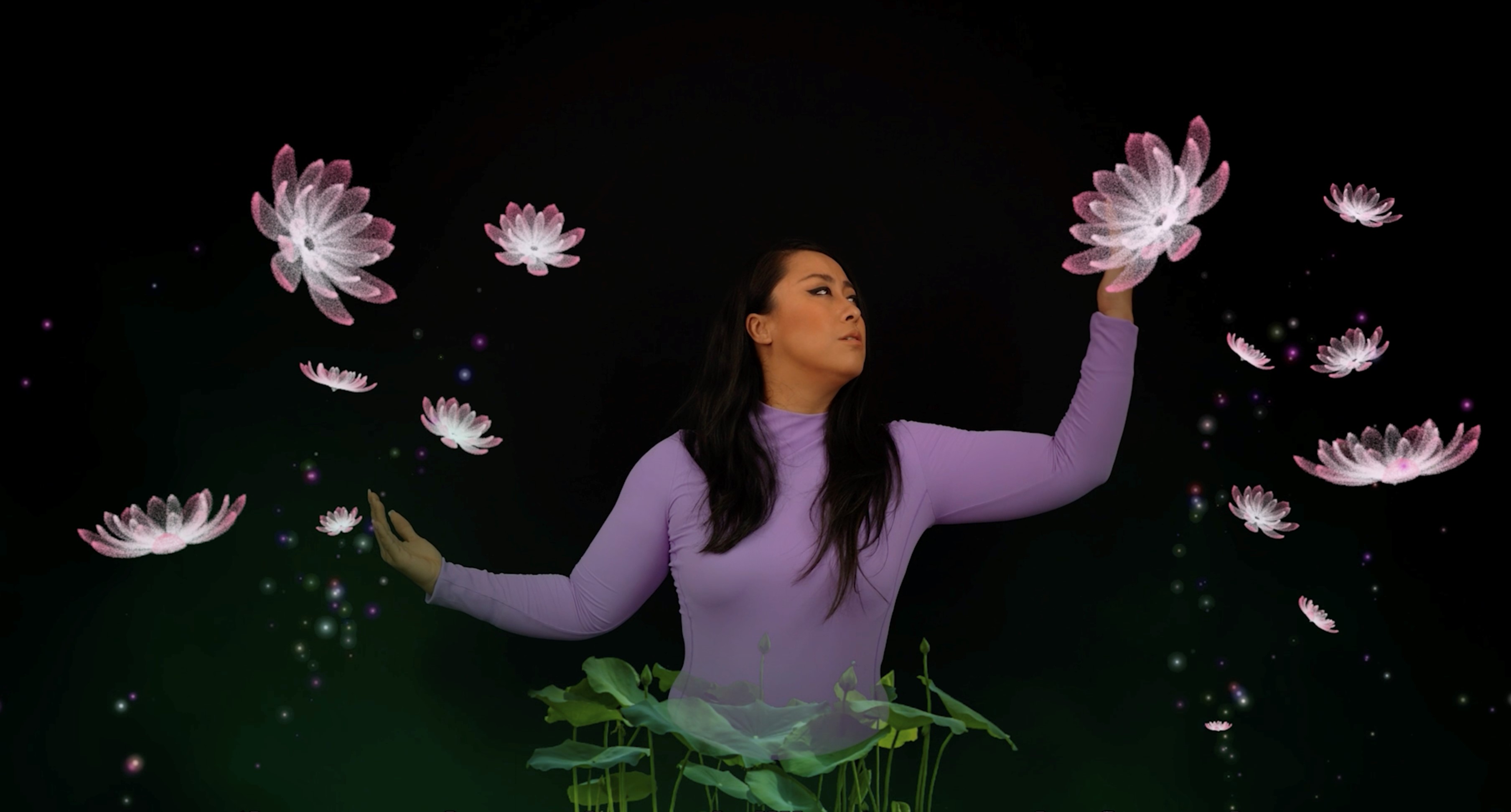 Cathy Mager: This performance has many layers of meaning. Firstly, it seeks to delve into deaf cultural identity. In my poem, I wrote, "as my hands unfurl, my heart opens to the sky", which points to liberation through sign language and deaf culture. Through the metaphor of a lotus flower's growth, the performance portrays a deaf person going through life and facing many challenges and obstacles, having to navigate them and figure out who they are and who will they become. The lotus flower also symbolizes admirable qualities of perseverance and resilience, which are key traits of the deaf community.