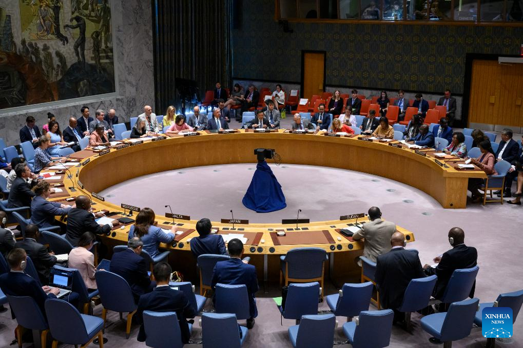 The UN Security Council holds a meeting on Sudan at the UN headquarters in New York, on Aug. 9, 2023. UN Assistant Secretary-General for Africa Martha Pobee on Wednesday stressed the need for a negotiated solution to end the military conflict in Sudan as soon as possible. (Loey Felipe/UN Photo/Handout via Xinhua)