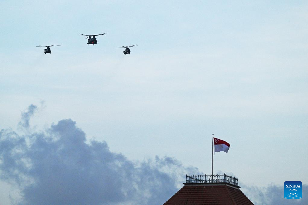SINGAPORE, Aug. 9 (Xinhua) -- Singapore held a National Day Parade on Wednesday to celebrate its 58th anniversary at Padang, an open playing field near the iconic Marina Bay, with a military show, performances and fireworks.