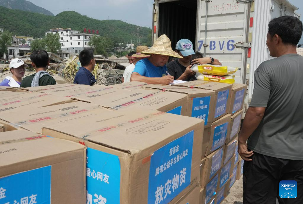 Relief supplies delivered to flood-affected residents in Laishui, N China
