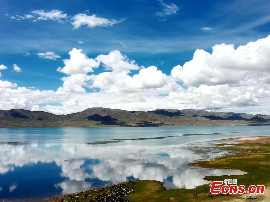 Herders drive livestock on the way to summer pasture in Dulan County of Haixi Mongolian-Tibetan Autonomous Prefecture, northwest China's Qinghai Province. (Photo: China News Service/Mo Jiayin)