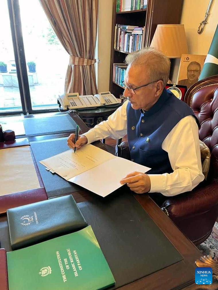 ISLAMABAD, Aug. 12 (Xinhua) -- Pakistani President Arif Alvi on Saturday approved the appointment of Senator Anwaar-ul-Haq Kakar as the caretaker prime minister, said a statement from the President House Media Wing.
