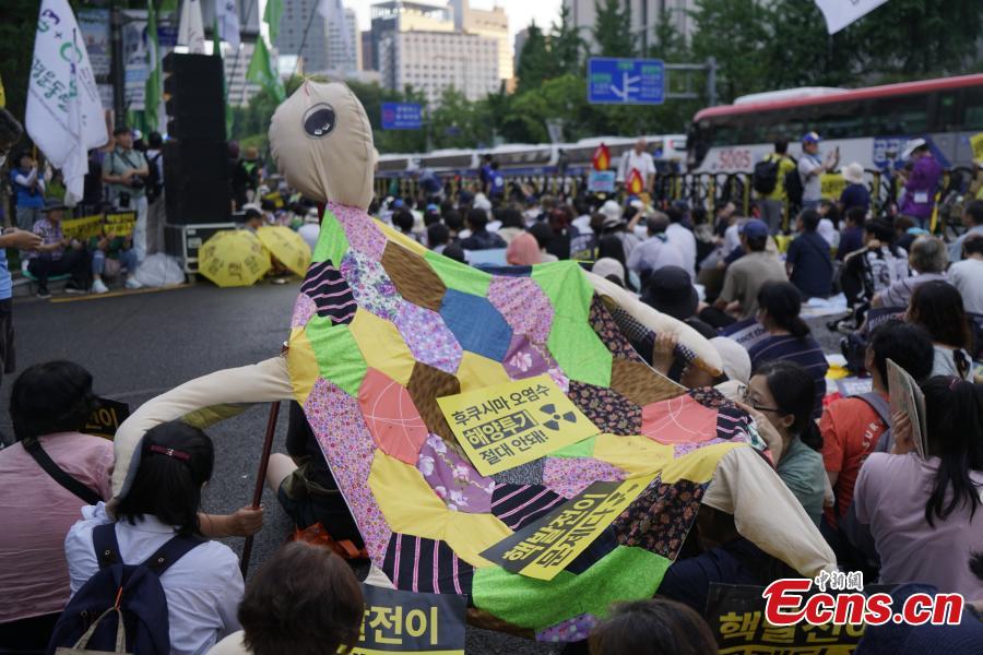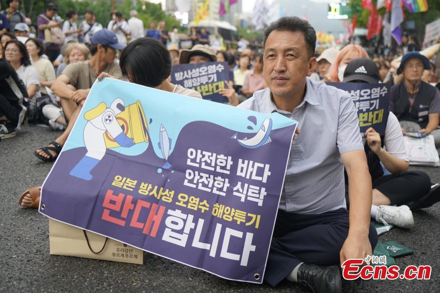 Hundreds of South Koreans gathered in Seoul on Saturday to oppose an initiative by Japan to release treated nuclear wastewater from the tsunami-devastated Fukushima plant into the ocean.