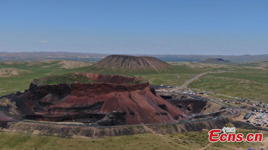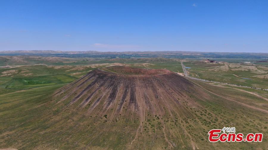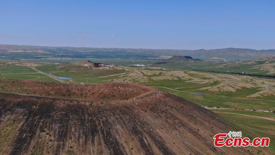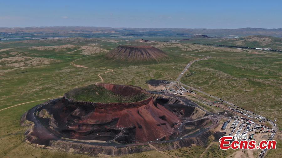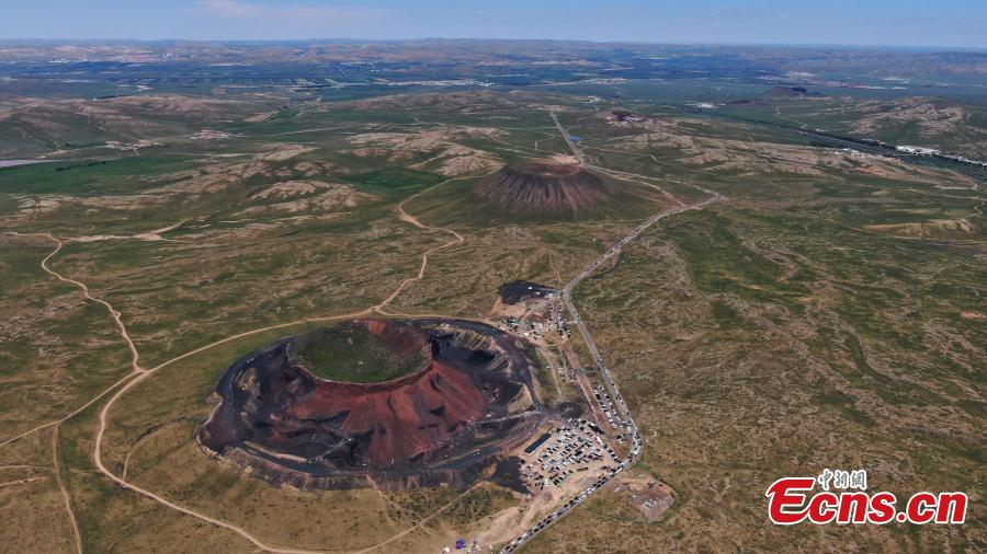 Aerial view of Ulanhada volcano cluster in Qahar Right Wing Rear Banner of Ulanqab, north China's Inner Mongolia Autonomous Region, Aug. 13, 2023. (Photo: China News Service/Liu Wenhua)