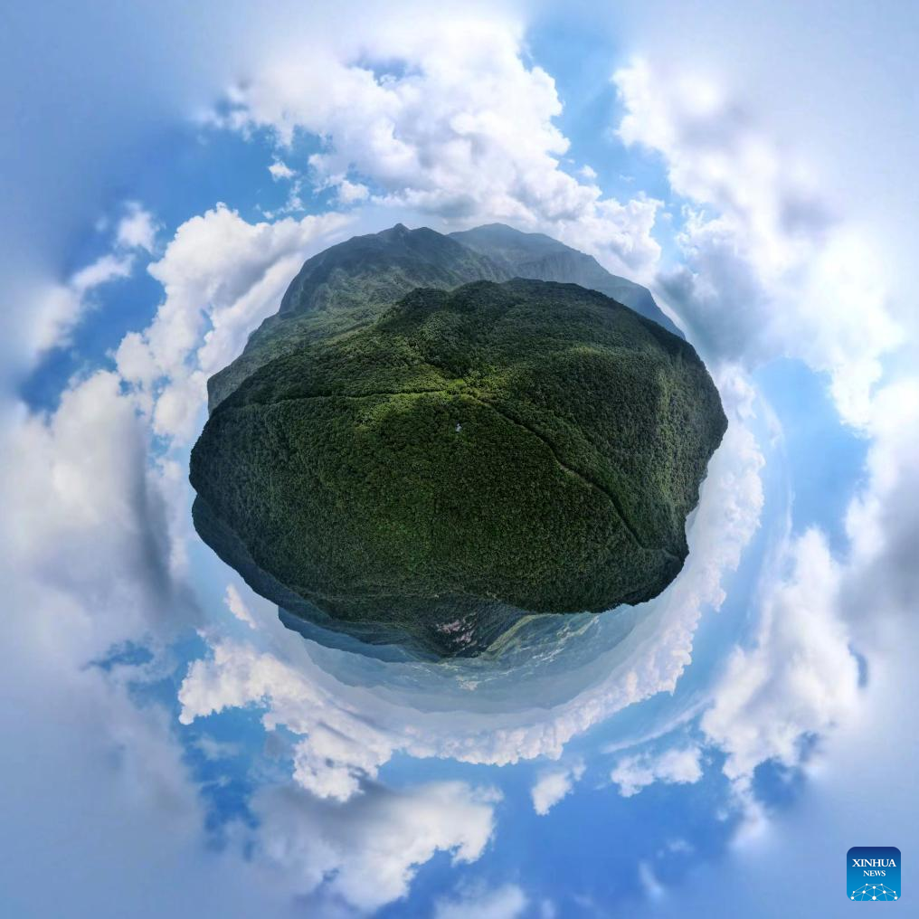 This aerial panoramic photo taken on Aug. 12, 2023 shows a view at Tiantangzhai management station in Anhui Tianma National Nature Reserve, east China's Anhui Province. (Xinhua/Huang Bohan)