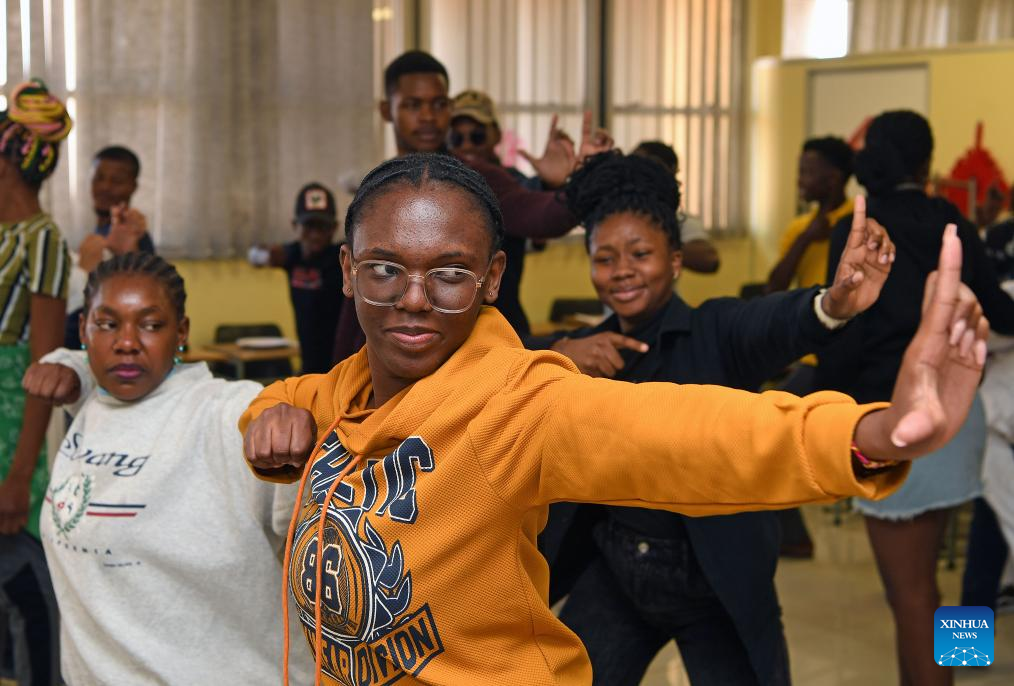 Students practice Baduanjin Qigong during a traditional Chinese medicine lecture at the University of Namibia in Windhoek, Namibia, on Aug. 14, 2023. The Chinese medical team in Namibia on Monday delivered a lecture on traditional Chinese medicine (TCM) to students from the University of Namibia, enabling them to have a better understanding of the TCM techniques. (Xinhua/Chen Cheng)