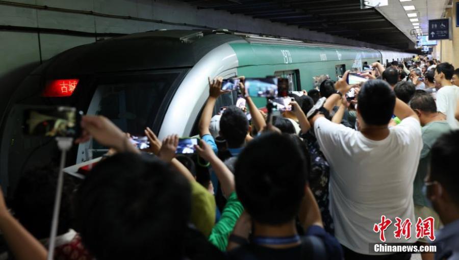 Passengers take photos of a 1960s-themed subway train of Beijing Subway Line 1, Aug. 14, 2023. (Photo: China News Service/Yang Kejia)