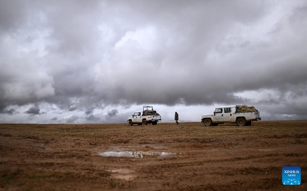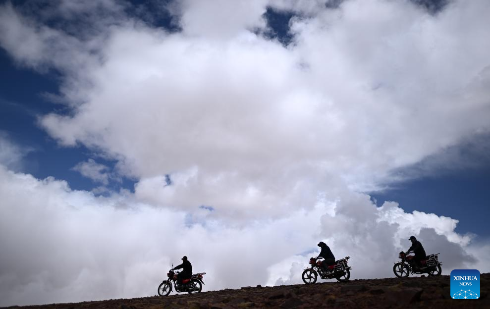 Staffers with the Drolkar Lake protection station of the Hoh Xil management office patrol around the Drolkar Lake area in Hoh Xil, northwest China's Qinghai Province, June 17, 2023. (Xinhua/Zhang Hongxiang)