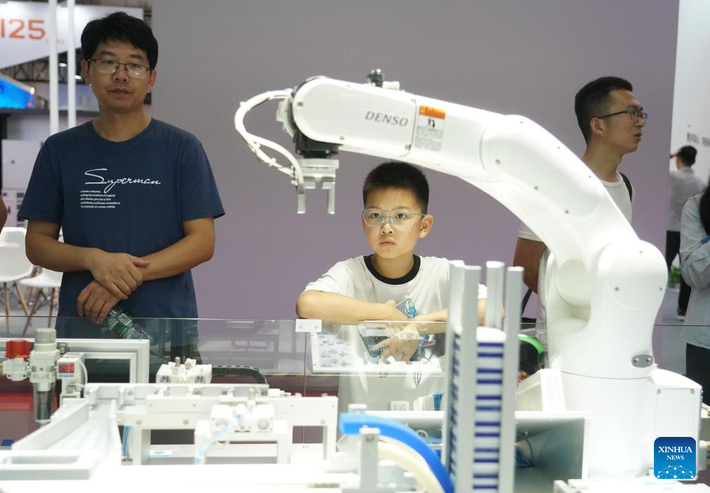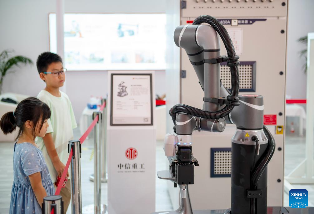 Children visit the World Robot Conference 2023 in Beijing, capital of China, Aug. 16, 2023. The World Robot Conference 2023 opened here Wednesday, showcasing cutting-edge achievements and the latest robot industry exhibits. (Xinhua/Xu Jiayi)