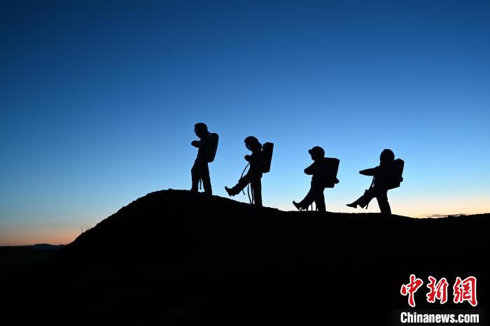 Tourists wearing "space suits" pose for photos at the Ulan Hada volcano group in Ulanqab city, north China's Inner Mongolia Autonomous Region. (Chinanews.com/Liu Wenhua)