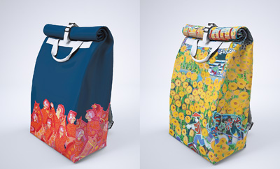 Photo shows two bags, whose designs are based on the paintings of villagers of Yudong village, Gouxi town, Quzhou city, east China's Zhejiang Province. (Photo courtesy of the bureau of culture, tourism and sports of Kecheng district, Quzhou city, Zhejiang Province)