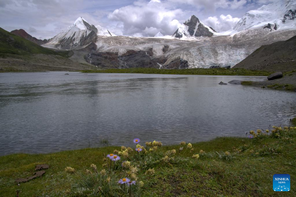 Tourists enjoy the lake scenery at the foot of the Sapukonglagabo Mountain in Biru County of Nagqu, southwest China's Tibet Autonomous Region, Aug. 16, 2023. (Xinhua/Jiang Fan)