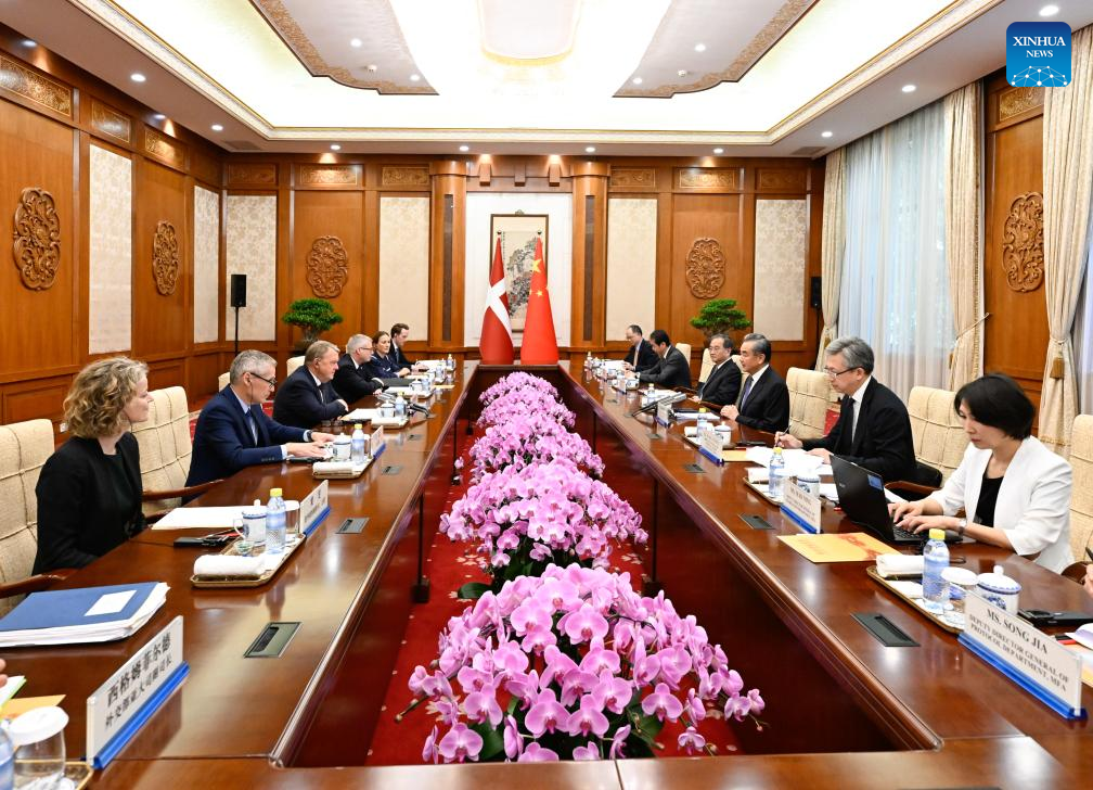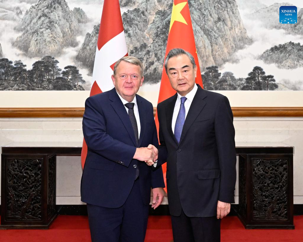BEIJING, Aug. 18 (Xinhua) -- Chinese Foreign Minister Wang Yi held talks with Minister for Foreign Affairs of Denmark Lars Lokke Rasmussen in Beijing on Friday, reaching a consensus to boost bilateral and China-Europe cooperation.