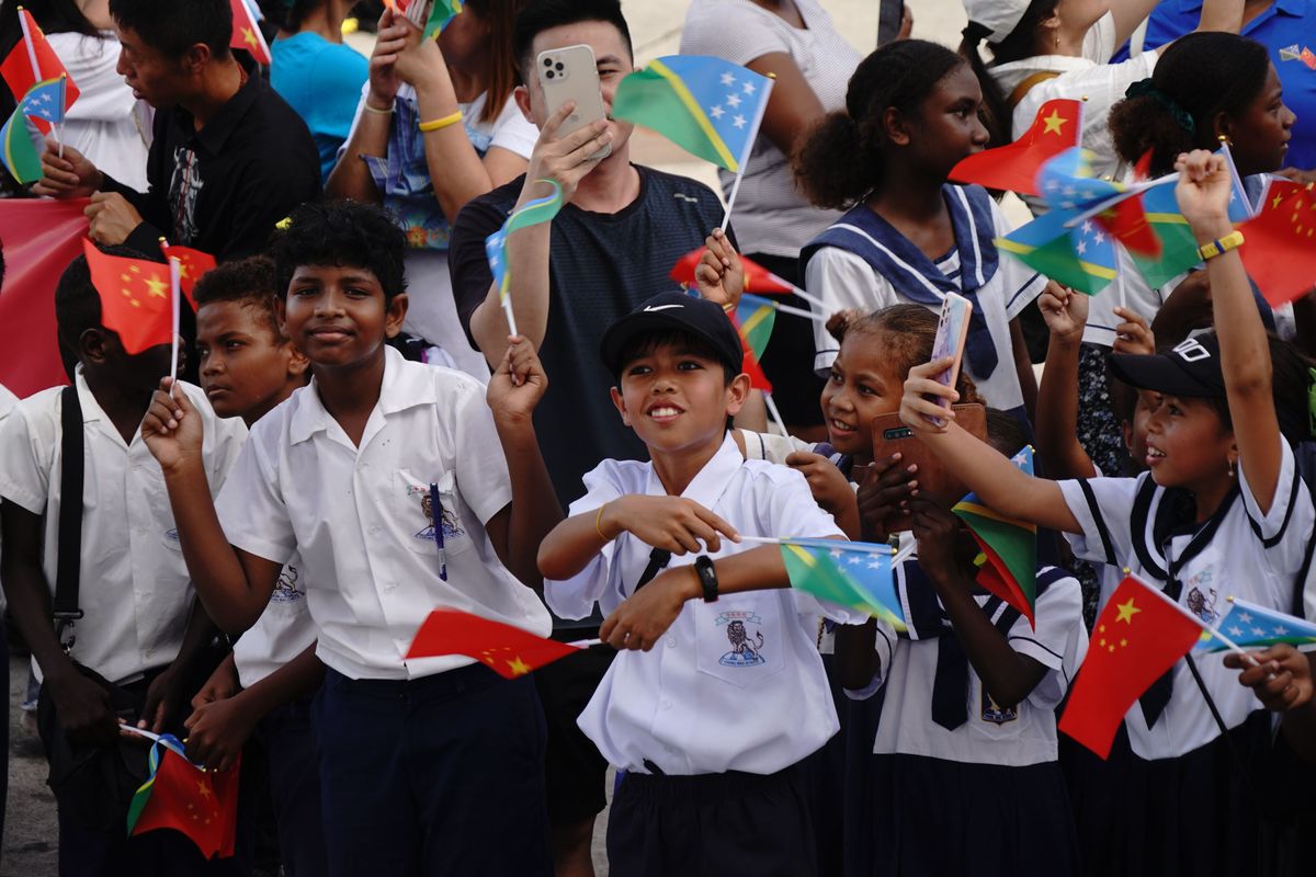 Local students welcome the hospital ship on Aug 19, 2023. [Photo by Xu Wei/For chinadaily.com.cn]
