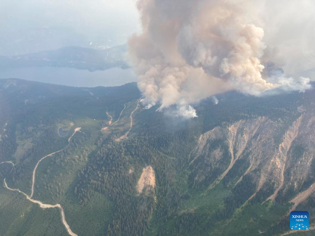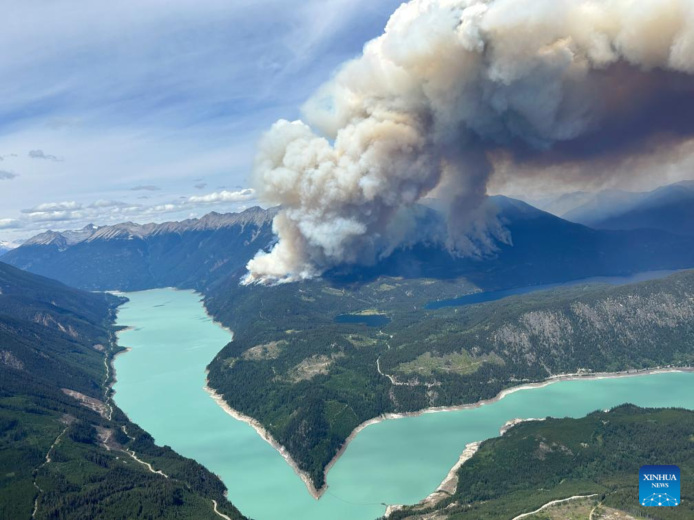 This aerial photo taken on Aug. 1, 2023 shows wildfires near Downton Lake, in the south-central part of British Columbia, Canada. (British Columbia Wildfire Service/Handout via Xinhua)