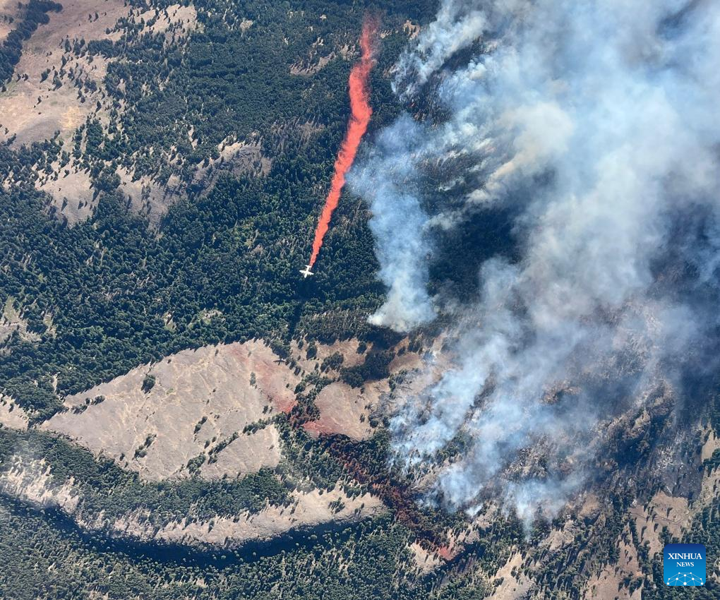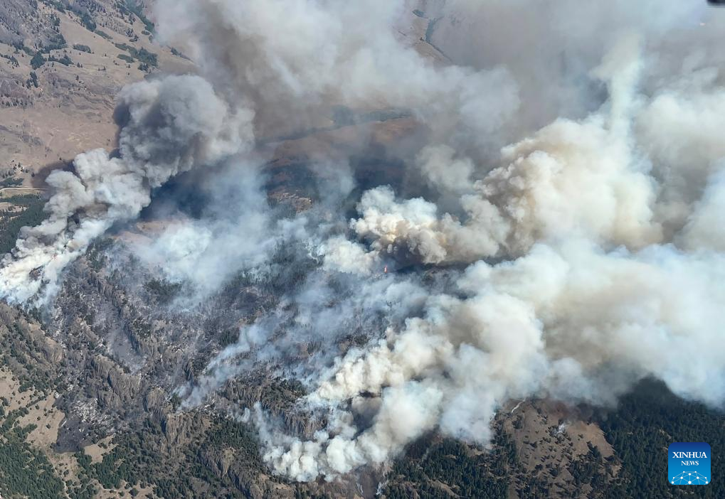 This aerial photo taken on Aug. 18, 2023 shows wildfires at Upper Park Rill Creek, in the South Okanagan of British Columbia, Canada. (British Columbia Wildfire Service/Handout via Xinhua)