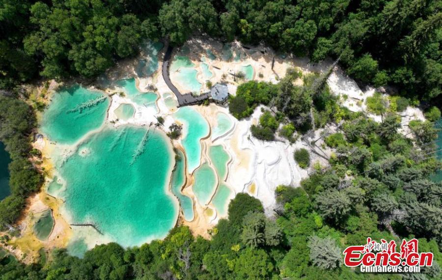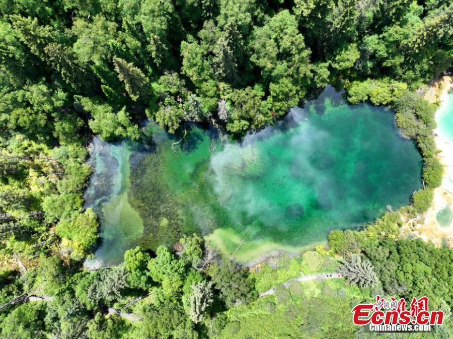 Picturesque scenery of Fairy Pool scenic area in Jiuzhaigou County, southwest China's Sichuan Province, Aug. 20, 2023. (Photo: China News Service/An Yuan)