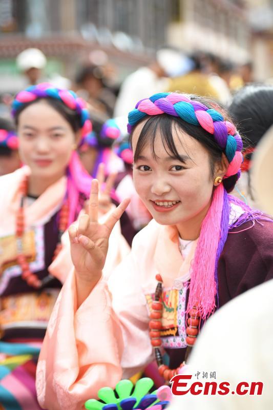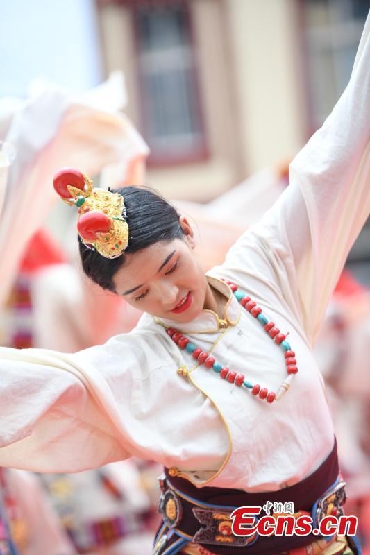 A total of 16 teams attended the dance contest on Sunday. Guozhuang in Tibetan is homophonic with Guozhuo, which means to sing and dance in a circle.