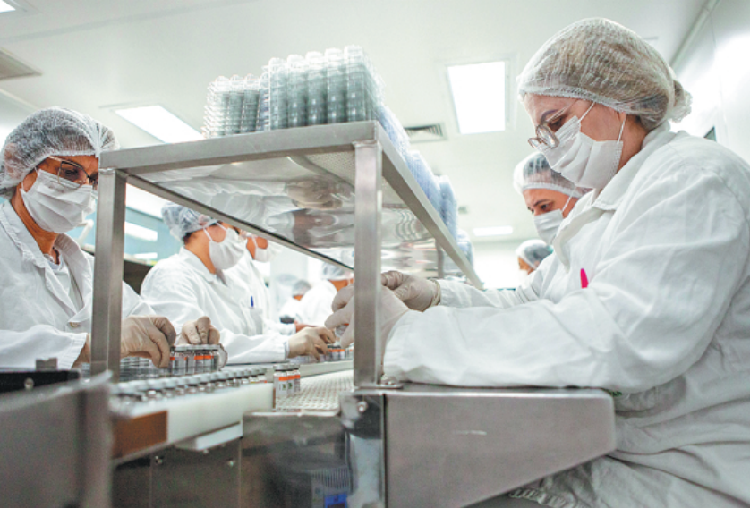Workers assemble vials of COVID-19 vaccines at the Butantan Institute in the state of Sao Paulo, Brazil, last August. The institute cooperated with Chinese pharmaceutical company Sinovac in clinical trials, including a COVID-19 vaccine. XINHUA