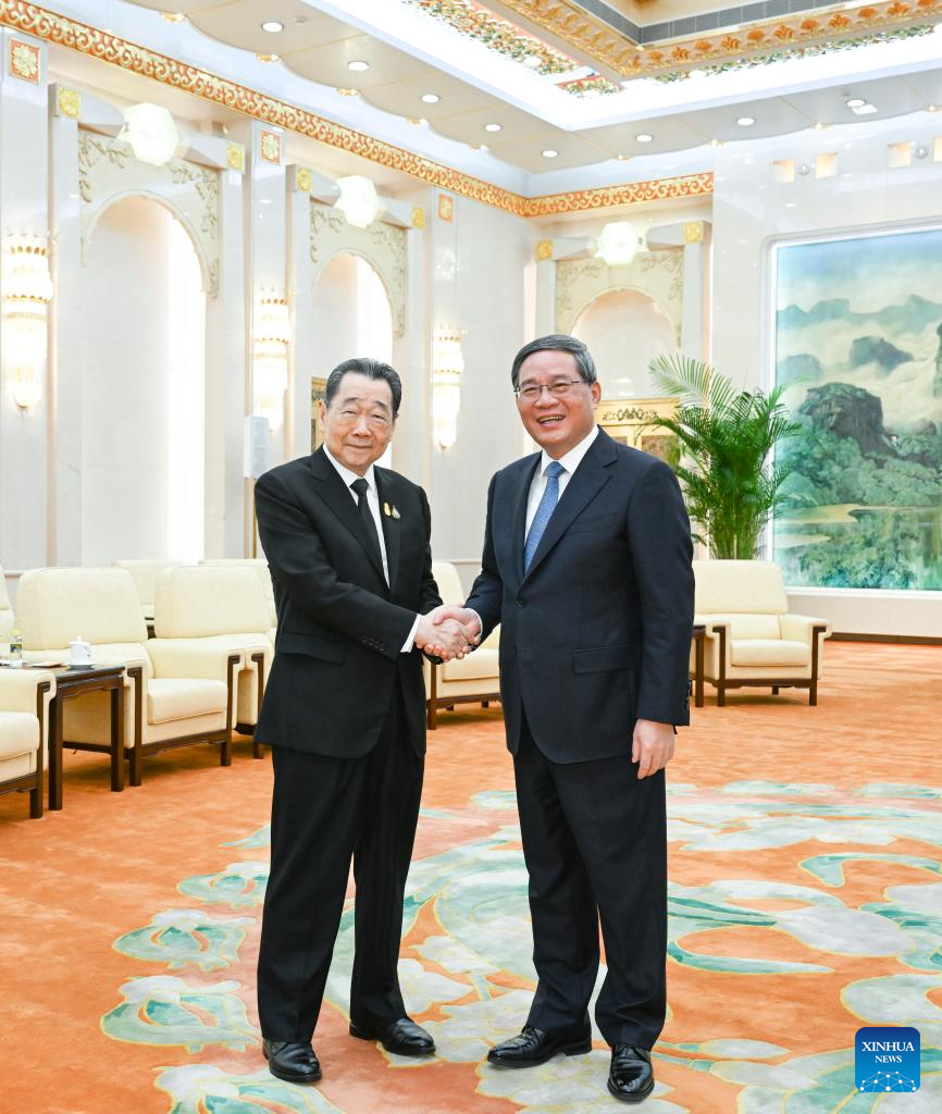 Chinese Premier Li Qiang meets with Dhanin Chearavanont, senior chairman of Thailand's Charoen Pokphand Group, at the Great Hall of the People in Beijing, capital of China, Aug. 21, 2023. (Xinhua/Zhang Ling)
