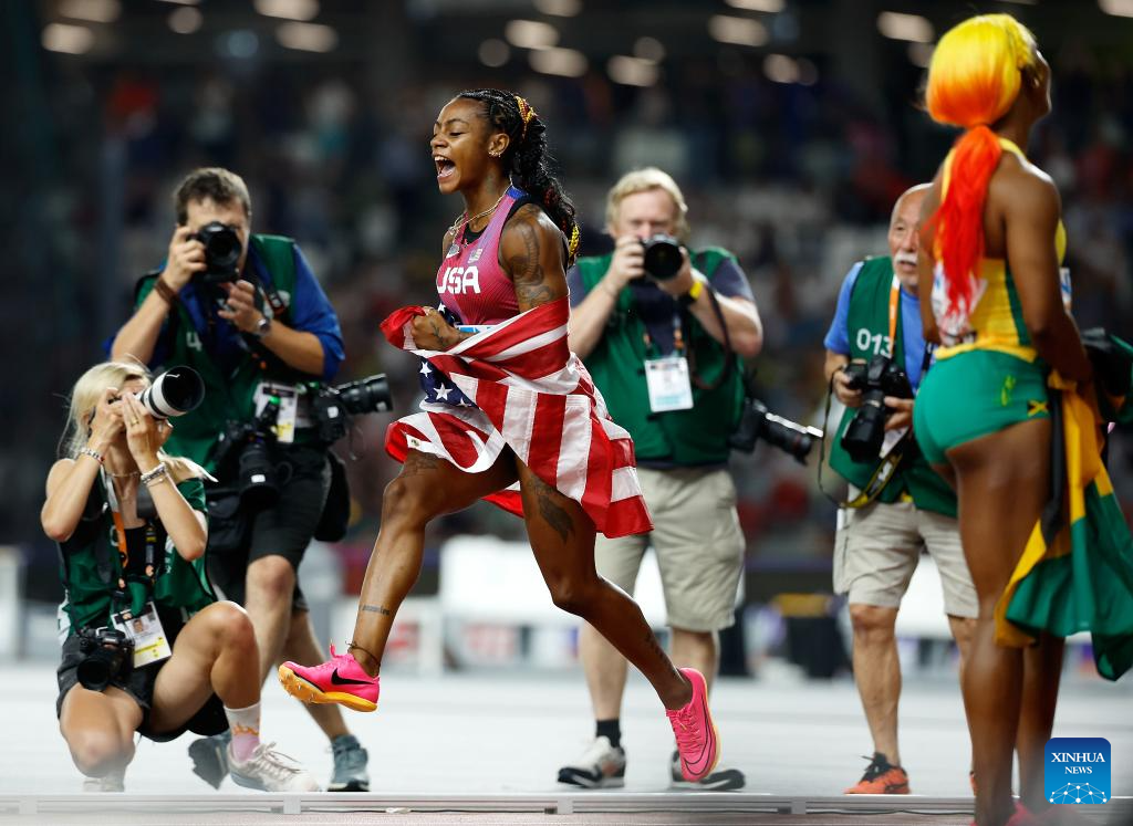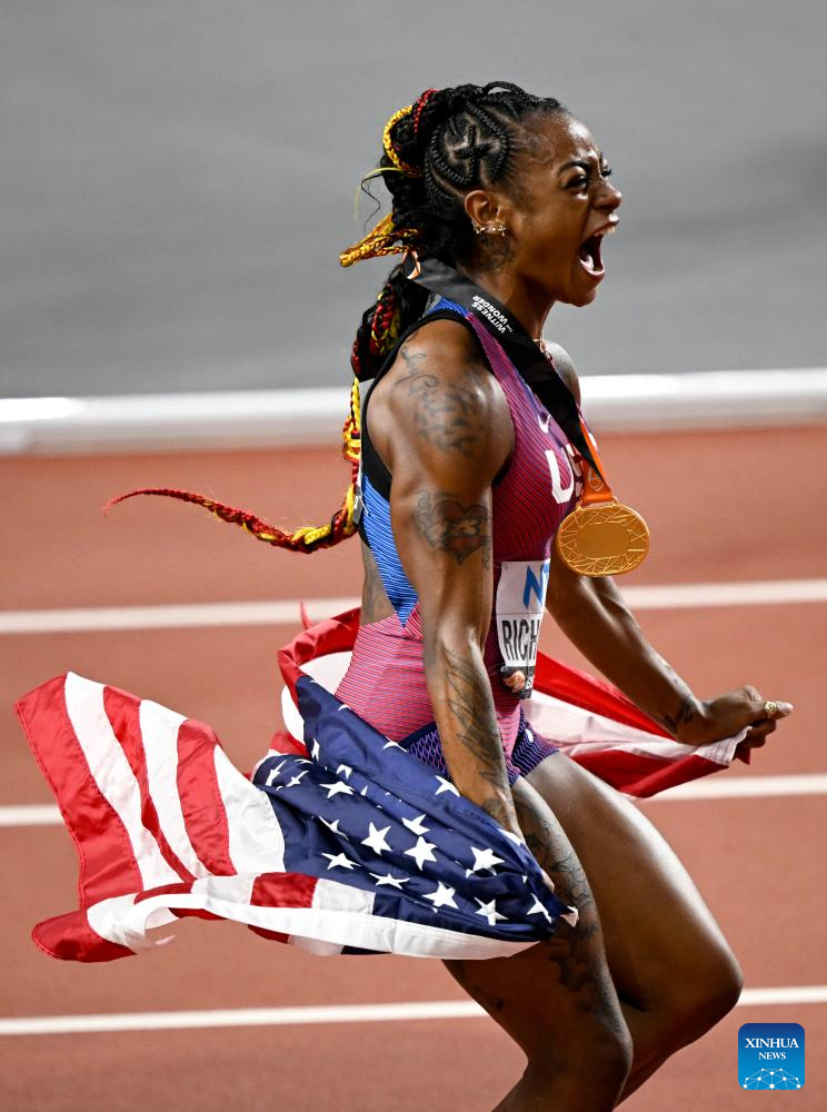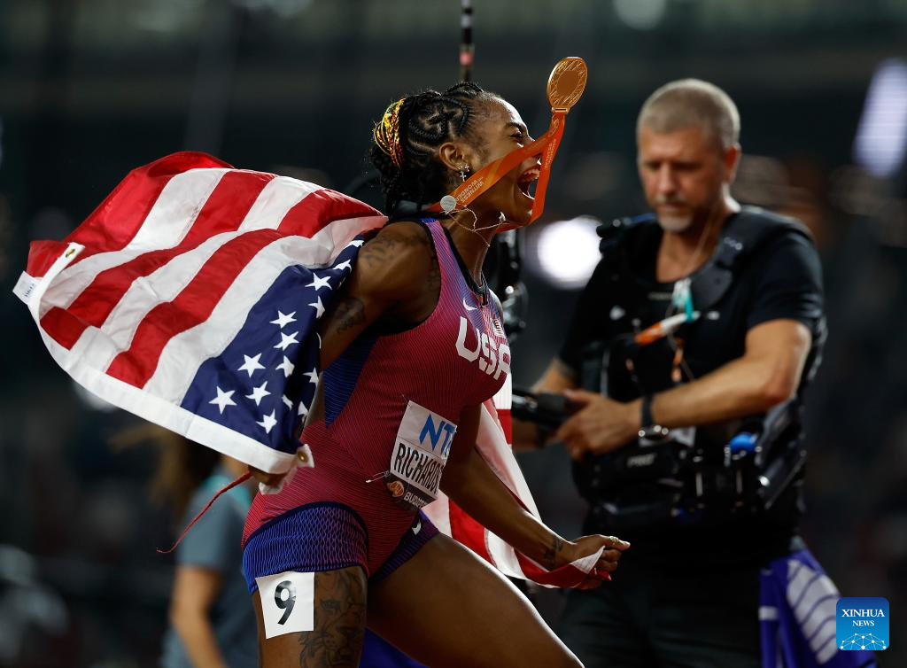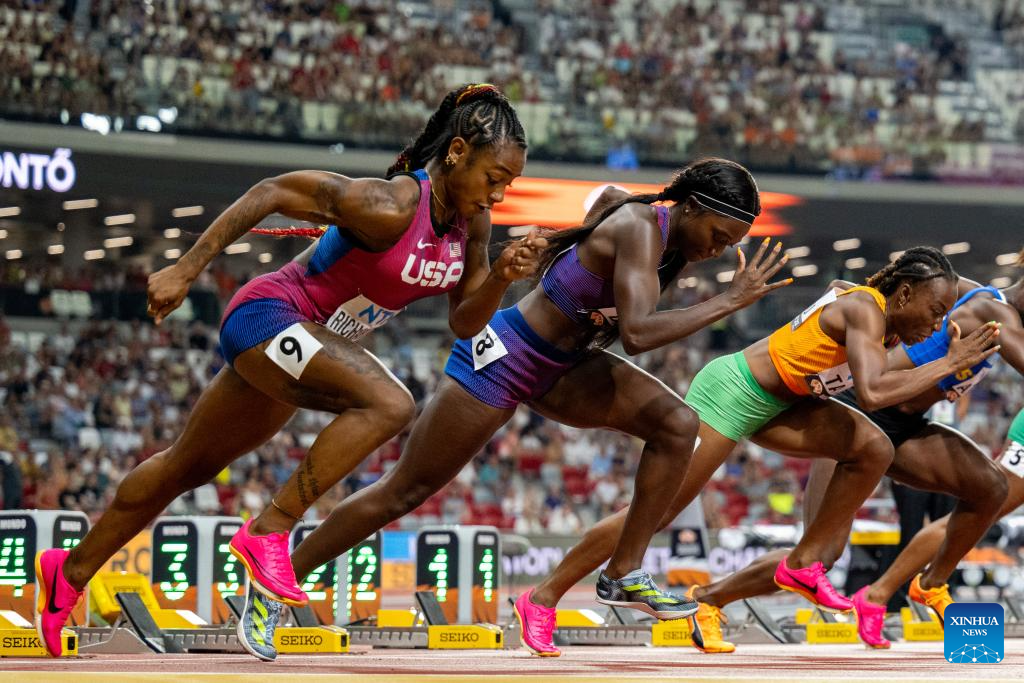 BUDAPEST, Aug. 21 (Xinhua) -- Debutant Sha'Carri Richardson outshone several renowned sprinters to clinch the top spot in the women's 100m race at the World Championships on Monday.