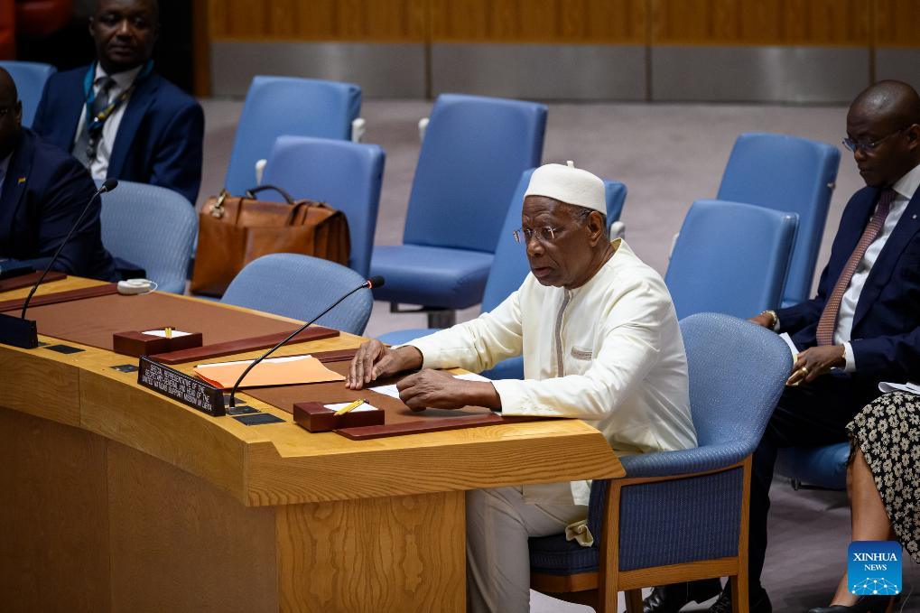 Abdoulaye Bathily, the UN secretary-general's special representative for Libya, briefs a Security Council meeting at the UN headquarters in New York, on Aug. 22, 2023. It is fundamental to restore Libya's stability to preserve regional security, the top UN envoy for the country said on Tuesday. (Loey Felipe/UN Photo/Handout via Xinhua)