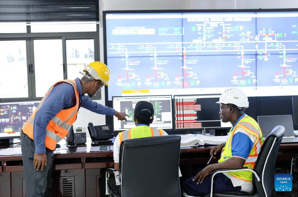 Engineers are seen at Karuma Hydropower Plant in Kiryandongo, Uganda, on Aug. 21, 2023. (Photo by Hajarah Nalwadda/Xinhua)