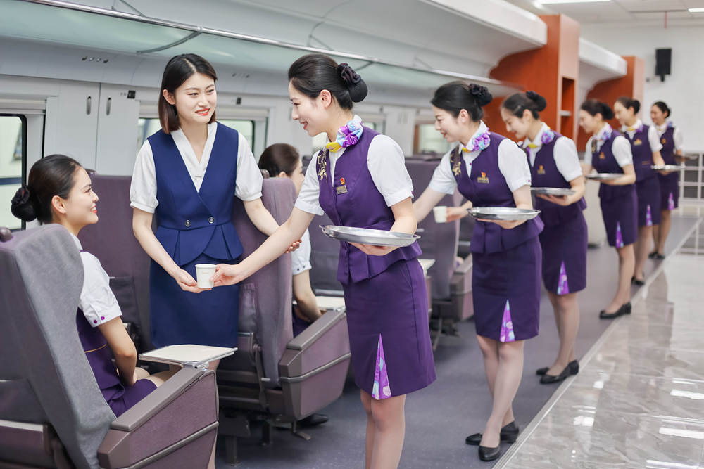 Train attendants from the China Railway Shanghai Group Co., Ltd. attend a training course on professional appearance. (Photo courtesy of the convergence media center of China Railway Shanghai Group Co., Ltd.)