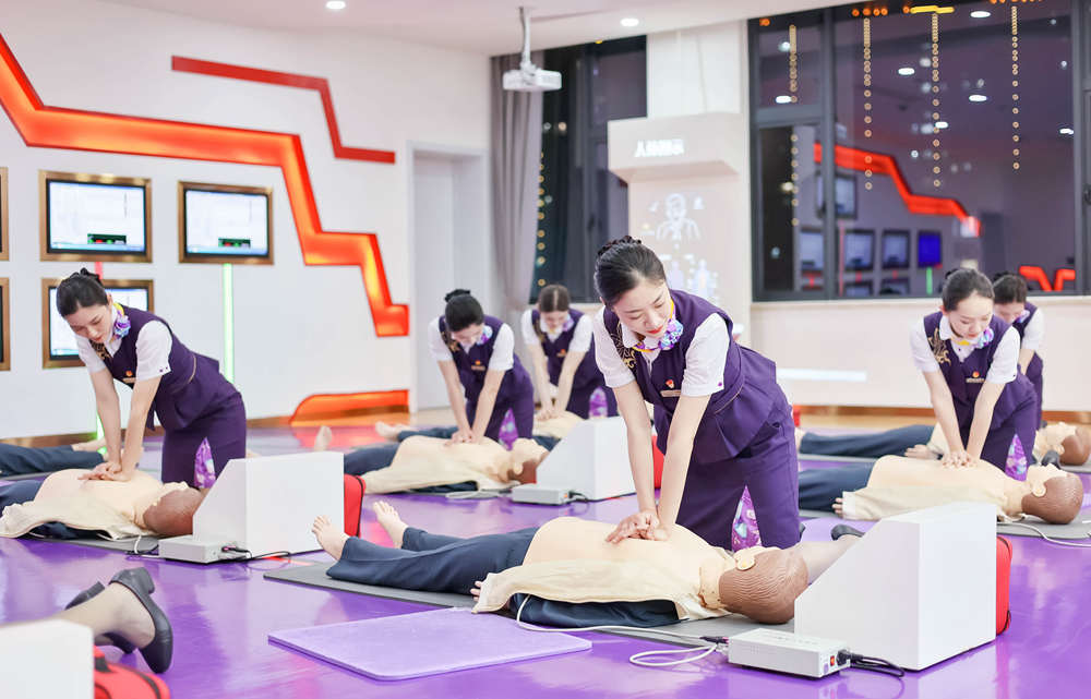 Train attendants from the China Railway Shanghai Group Co., Ltd. receive first-aid training. (Photo courtesy of the convergence media center of China Railway Shanghai Group Co., Ltd.)
