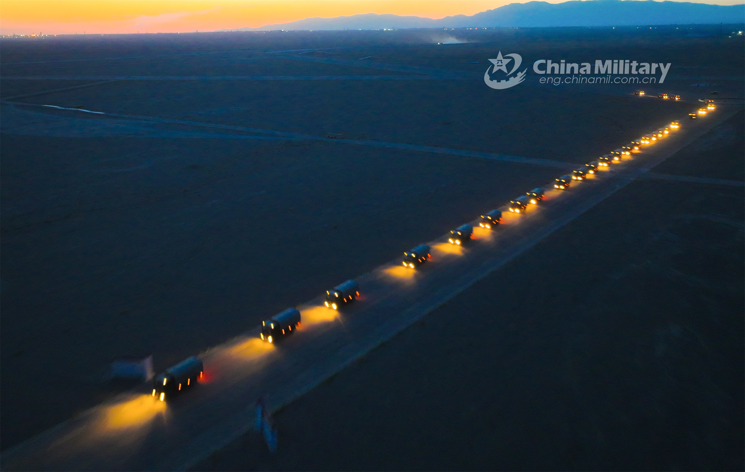 A convoy of military vehicles carrying weapons and equipment is en route to a designated training field during a recent transportation training drill conducted by a transport regiment of the air force under the PLA Western Theater Command. (eng.chinamil.com.cn/Photo by Deng Shining)