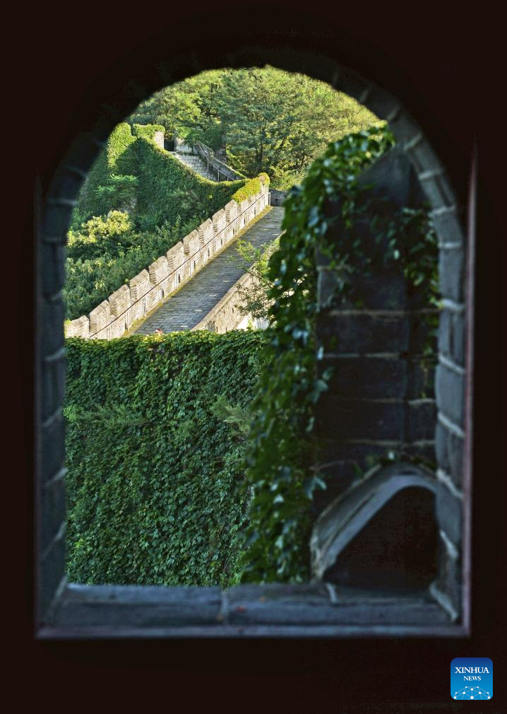 This photo taken on Aug. 23, 2023 shows the scenery of Hushan section of the Great Wall in Dandong City, northeast China's Liaoning Province. (Xinhua/Zhang Cheng)