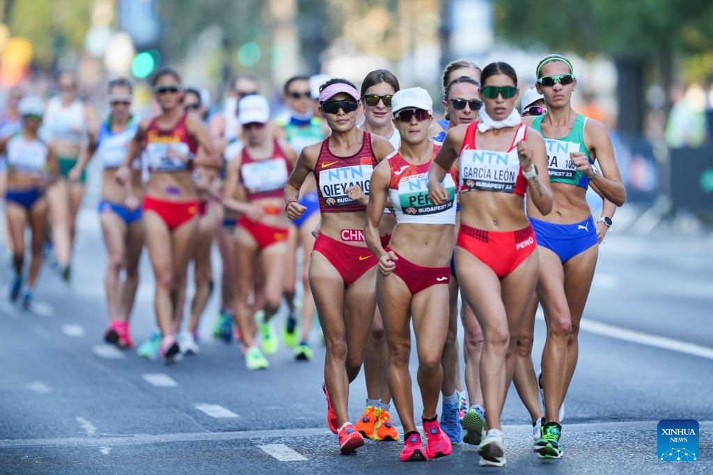 Athletes compete during the Women's 35km Race Walk Final of the World Athletics Championships Budapest 2023 in Budapest, Hungary, Aug. 24, 2023. (Xinhua/Zheng Huansong)