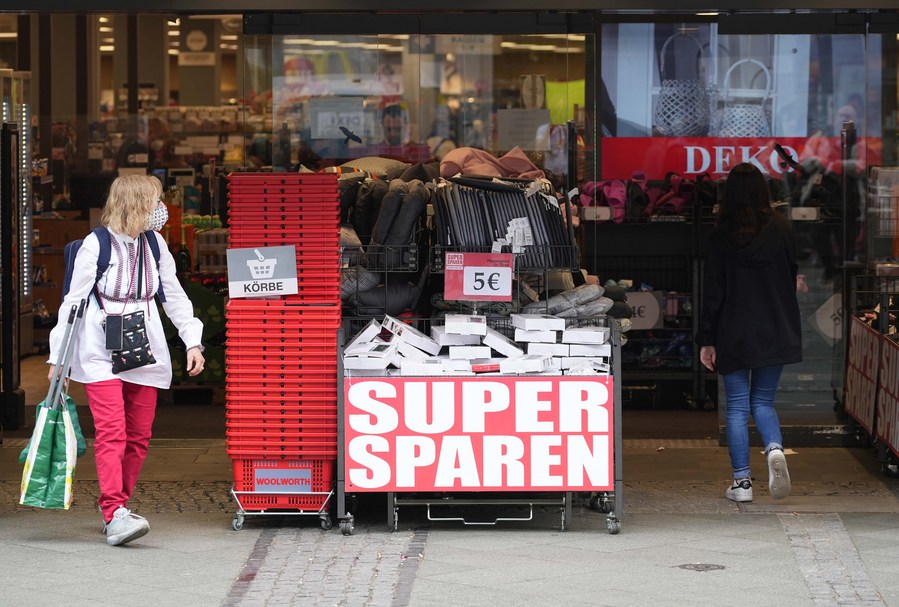 Customers are seen at a shop in Berlin, capital of Germany, on May 11, 2022. (Photo by Stefan Zeitz/Xinhua)