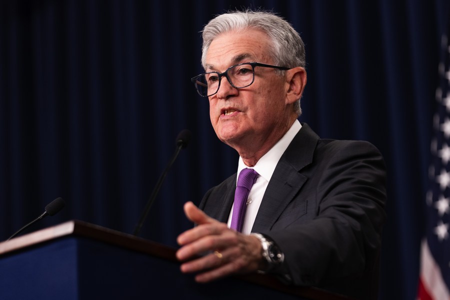 U.S. Federal Reserve Chair Jerome Powell attends a press conference in Washington, D.C., the United States, on July 26, 2023. (Photo by Aaron Schwartz/Xinhua)