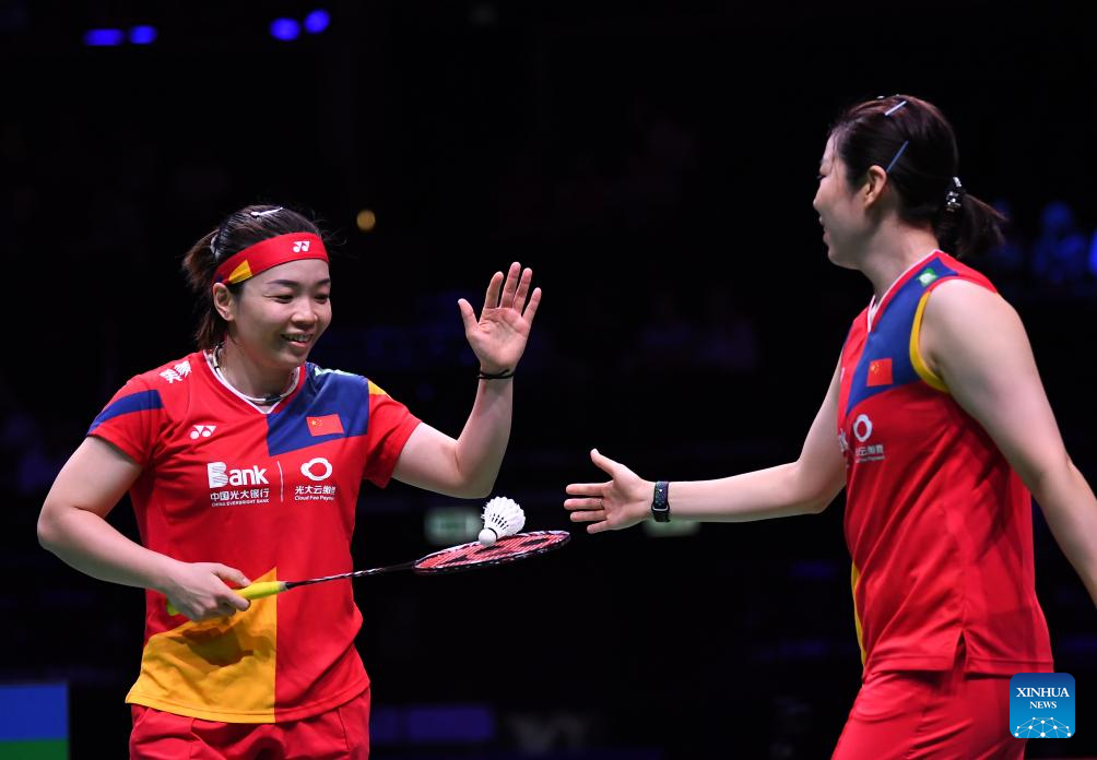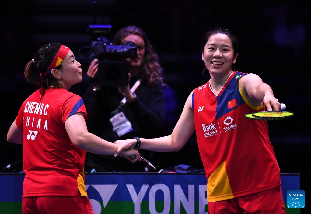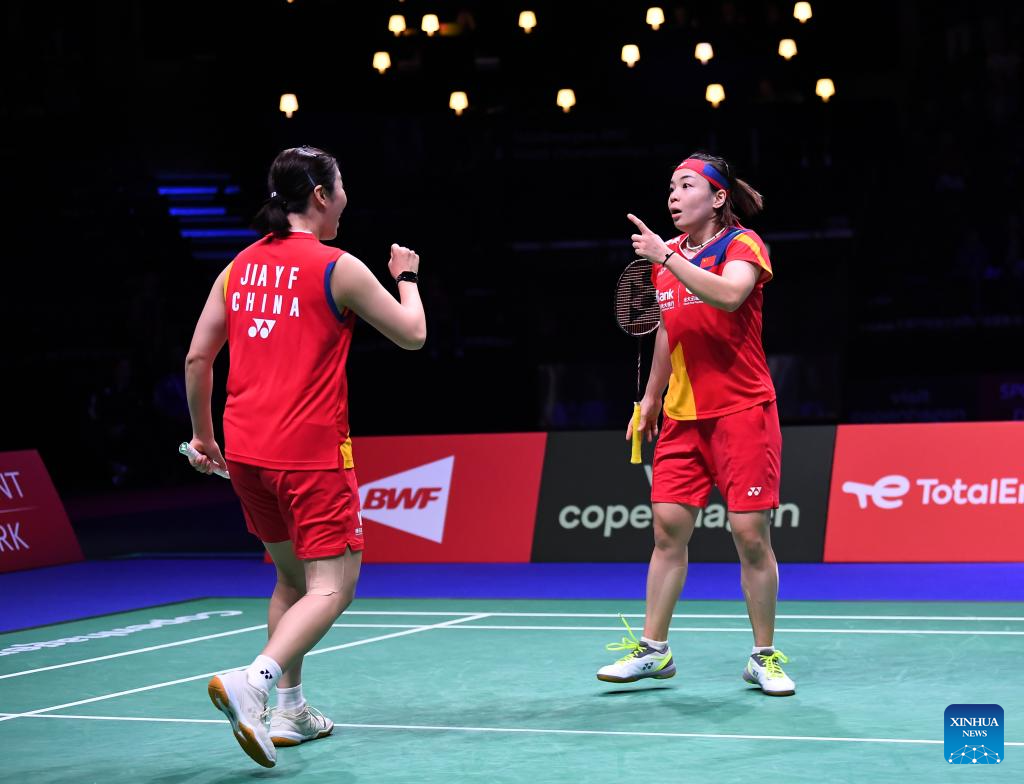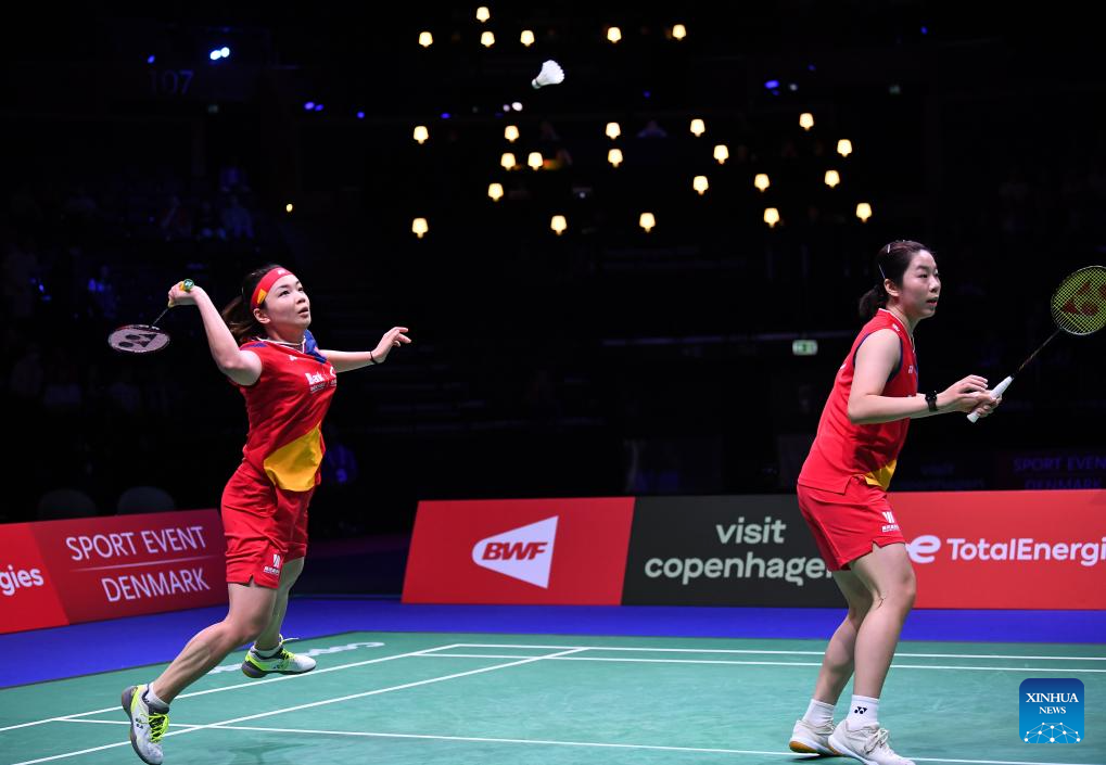 COPENHAGEN, Aug. 26 (Xinhua) -- Defending champions Chen Qingchen and Jia Yifan defeated their Chinese compatriots Zhang Shuxian and Zheng Yu 21-14, 21-16 here on Saturday and are set to make their fourth appearance in the women's doubles final of the BWF World Championships.