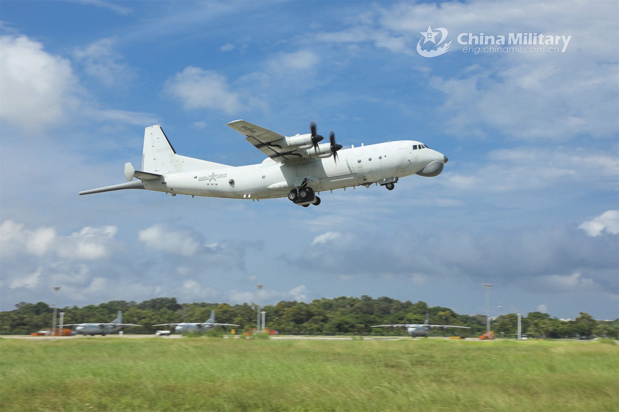 An anti-submarine patrol aircraft attached to a naval aviation regiment under the PLA Southern Theater Command takes off during a submarine search and attack training exercise from August 13 to 15, 2023. (eng.chinamil.com.cn/Photo by Qin Qianjiang)