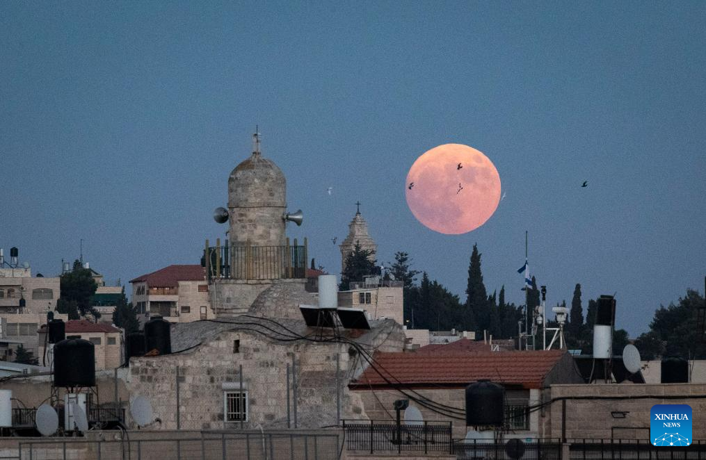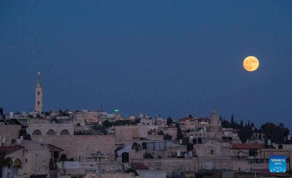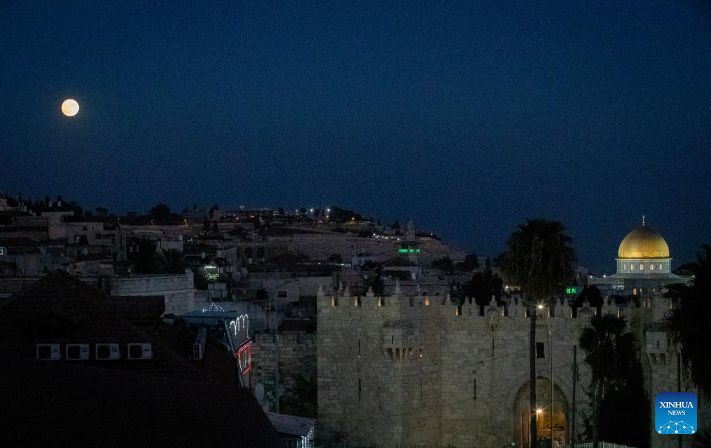 A full moon is seen over Jerusalem, on Aug. 30, 2023. (Xinhua/Chen Junqing)