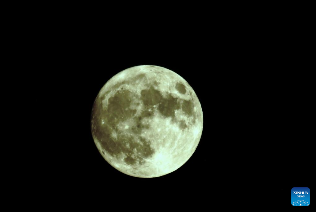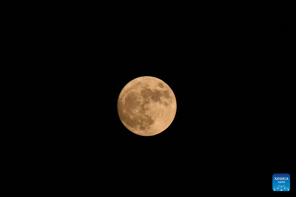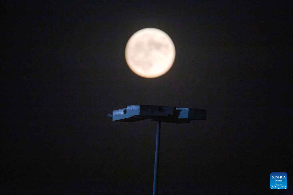A full moon is seen in the sky over Nicosia, Cyprus, on Aug. 30, 2023. (Photo by George Christophorou/Xinhua)