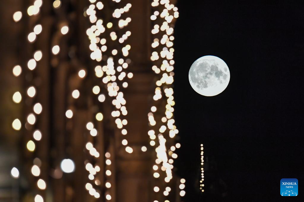 Photo taken on Aug. 30, 2023 shows a full moon over Vienna, Austria. (Xinhua/He Canling)