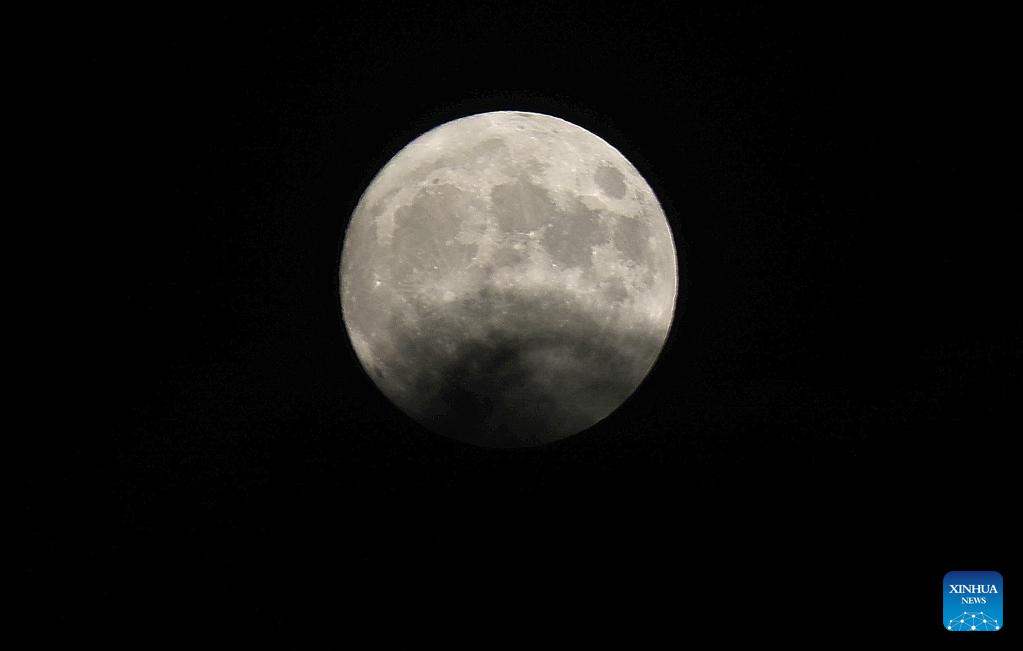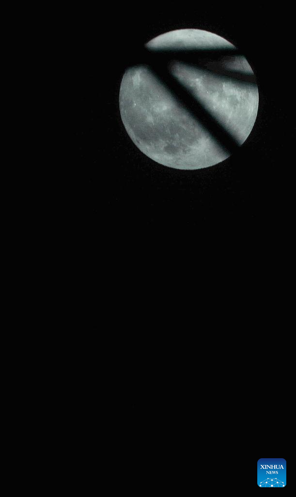 A full moon is seen in the sky over Guwahati city of India's northeastern state of Assam, Aug. 30, 2023. (Str/Xinhua)