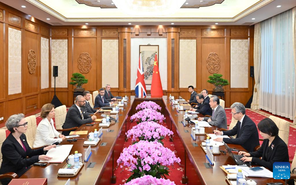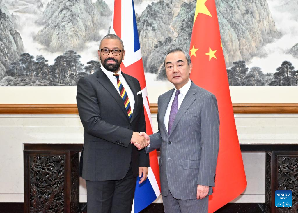 Chinese Foreign Minister Wang Yi, also a member of the Political Bureau of the Communist Party of China Central Committee, holds talks with James Cleverly, the Secretary of State for Foreign, Commonwealth and Development Affairs of the United Kingdom, in Beijing, capital of China, Aug. 30, 2023. (Xinhua/Yue Yuewei)