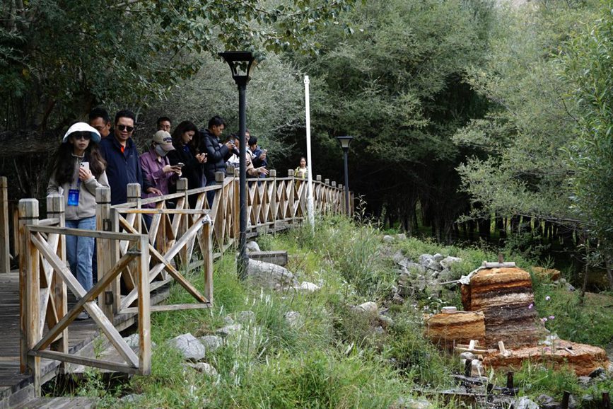 Tourists visit the watermill corridor, a scenic spot in Nyemo county, Lhasa city, southwest China's Xizang Autonomous Region. (Photo/People's Daily Online)