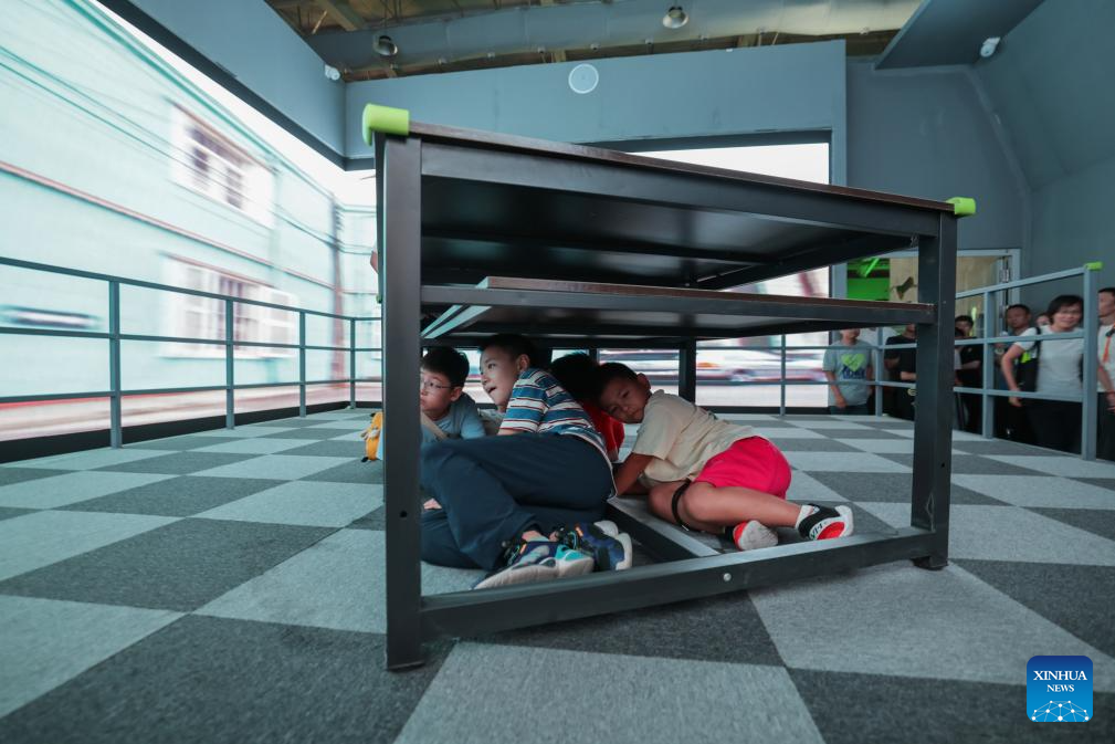 Children experience the simulation of earthquakes during the 2023 China International Fair for Trade in Services (CIFTIS) at Shougang Park in Beijing, capital of China, Sept. 3, 2023. (Xinhua/Zhang Yuwei)