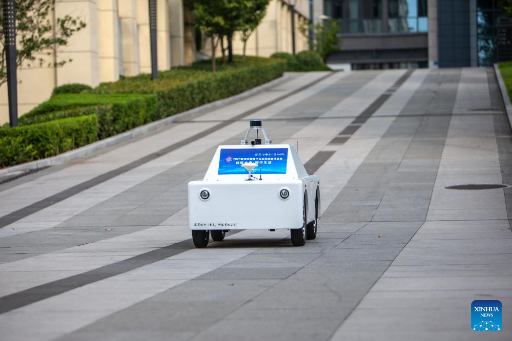 A vehicle is seen during the Smart China Expo Smart Automobile Scenario Challenge in Yongchuan District of southwest China's Chongqing, Sept. 1, 2023. The challenge was held in Yongchuan District of Chongqing from Sept. 1 to 3. More than 180 industry representatives and 19 teams from the field of intelligent vehicles participated in the competition. (Xinhua/Huang Wei)